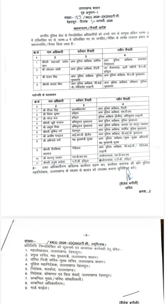 उत्तराखंड पुलिस में 15 एएसपी और सात डीएसपी के तबादले, 11 की पदोन्नति