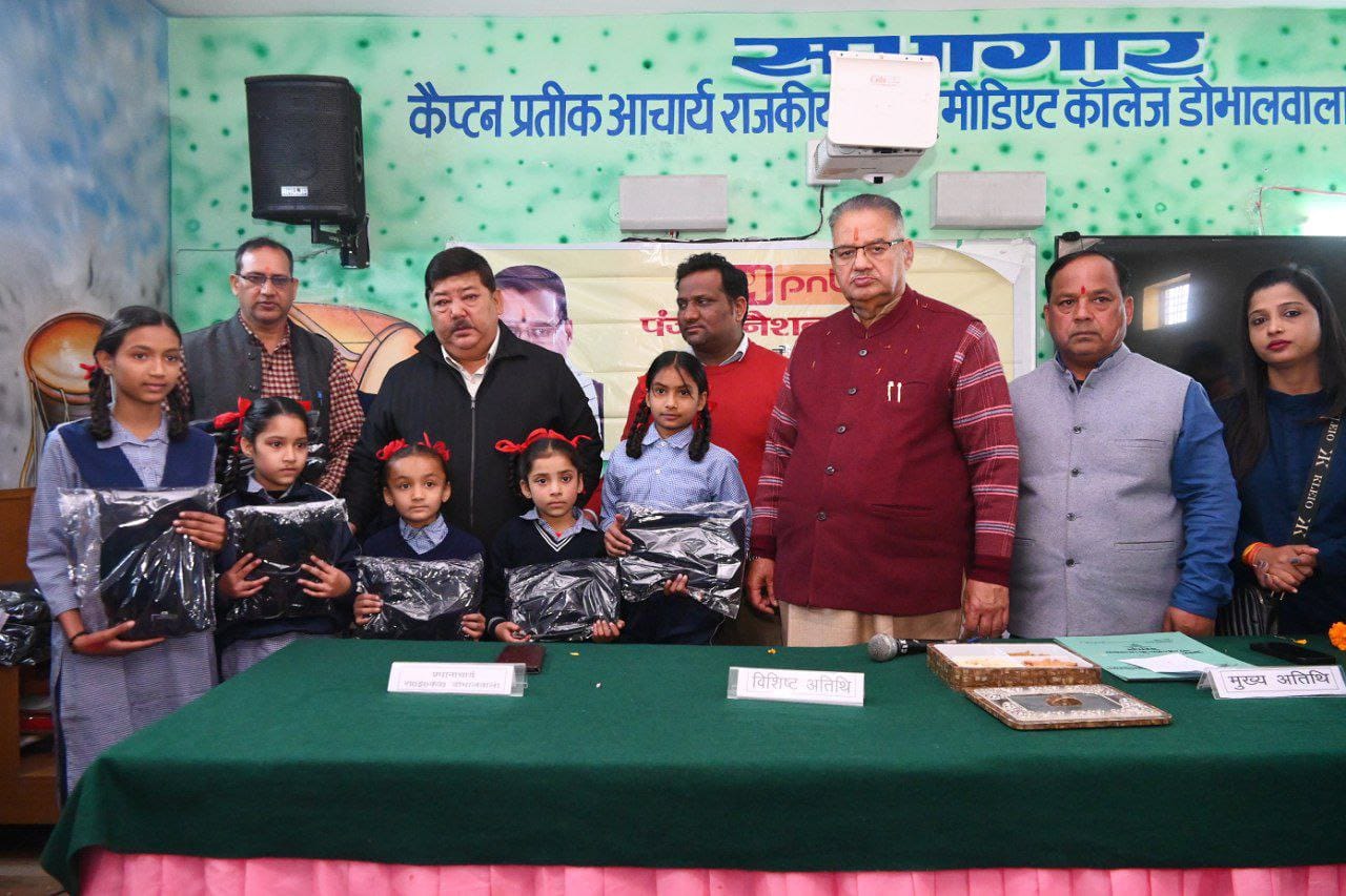 देहरादून। कैबिनेट मंत्री गणेश जोशी ने आज डोभालवाला इंटर कॉलेज में पंजाब नेशनल बैंक के सहयोग से सीएसआ मद के अंतर्गत राजकीय इंटर कॉलेज, डोभालवाला के छात्र-छात्राओं को स्वेटर वितरित किए गए। इस अवसर पर कैबिनेट मंत्री गणेश जोशी ने राज्य एवं जिला स्तरीय विभिन्न प्रतियोगताओं में उत्कृष्ट प्रदर्शन करने वाले छात्र छात्राओं को प्रमाण पत्र भी वितरित किए। कार्यक्रम के दौरान छात्र-छात्राओं को स्वेटर प्राप्त कर खुशी जाहिर की। इसके अतिरिक कैबिनेट मंत्री गणेश जोशी ने मसूरी विधानसभा क्षेत्र के अंतर्गत रायपुर ब्लॉक के 35 से अधिक आंगनवाड़ी केंद्रों को भी स्वेटर वितरित किए।