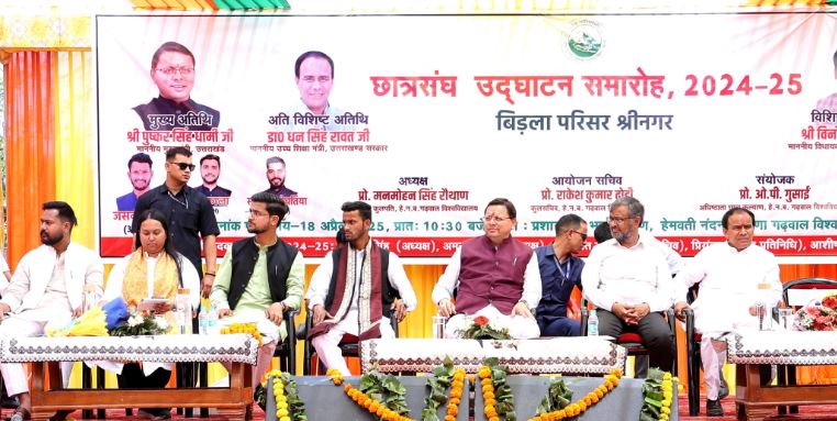 पौड़ी। प्रदेश के मुख्यमंत्री पुष्कर सिंह धामी ने आज हेमवती नंदन बहुगुणा गढ़वाल केंद्रीय विश्वविद्यालय परिसर, श्रीनगर में आयोजित छात्रसंघ उद्घाटन समारोह 2024-25 में मुख्य अतिथि के रूप में शिरकत की। उन्होंने दीप प्रज्ज्वलित कर कार्यक्रम का शुभारंभ किया।