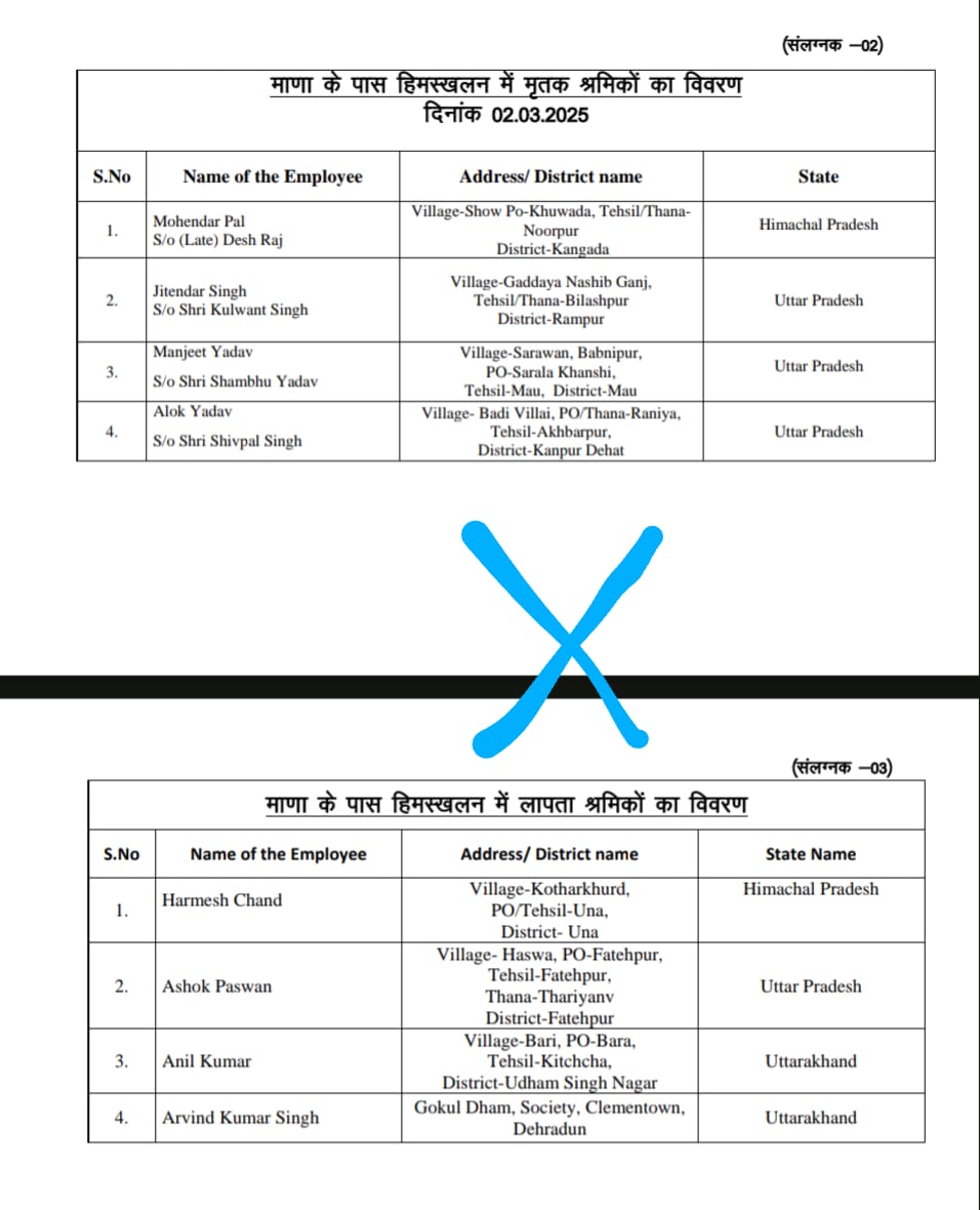 देखें, माणा हादसे के मृतक व घायलों की सूची