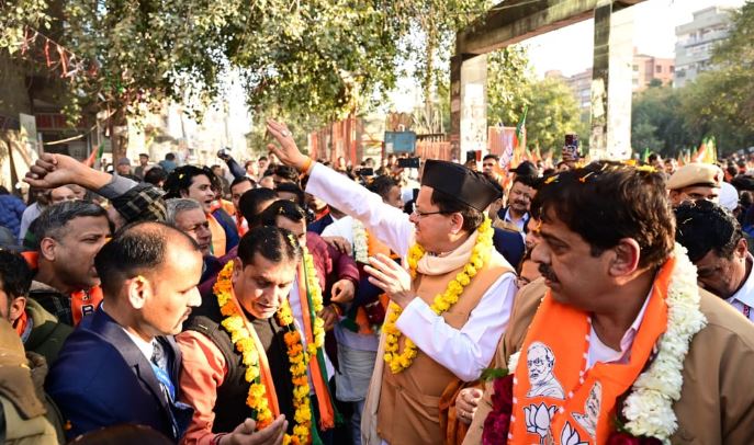 रोड शो में बड़ी संख्या में सीएम धामी के स्वागत में उमड़े लोग