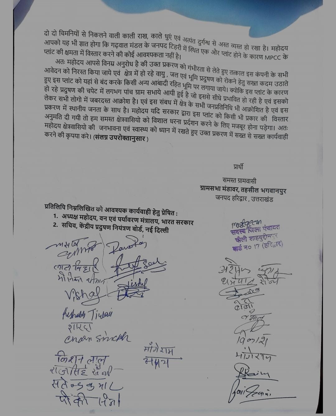 ग्रामीणों ने राज्य पर्यावरण प्रभाव आकलन प्राधिकरण के साथ-साथ केंद्रीय प्रदूषण नियंत्रण बोर्ड (नई दिल्ली) एवं पर्यावरण मंत्रालय, भारत सरकार को भी पत्र प्रेषित कर तत्काल कार्यवाही की माँग की है। ग्रामीणों की स्पष्ट मांग है कि कंपनी का प्रस्ताव निरस्त किया जाए और इस प्लांट को किसी आबादी रहित स्थान पर स्थानांतरित किया जाए।