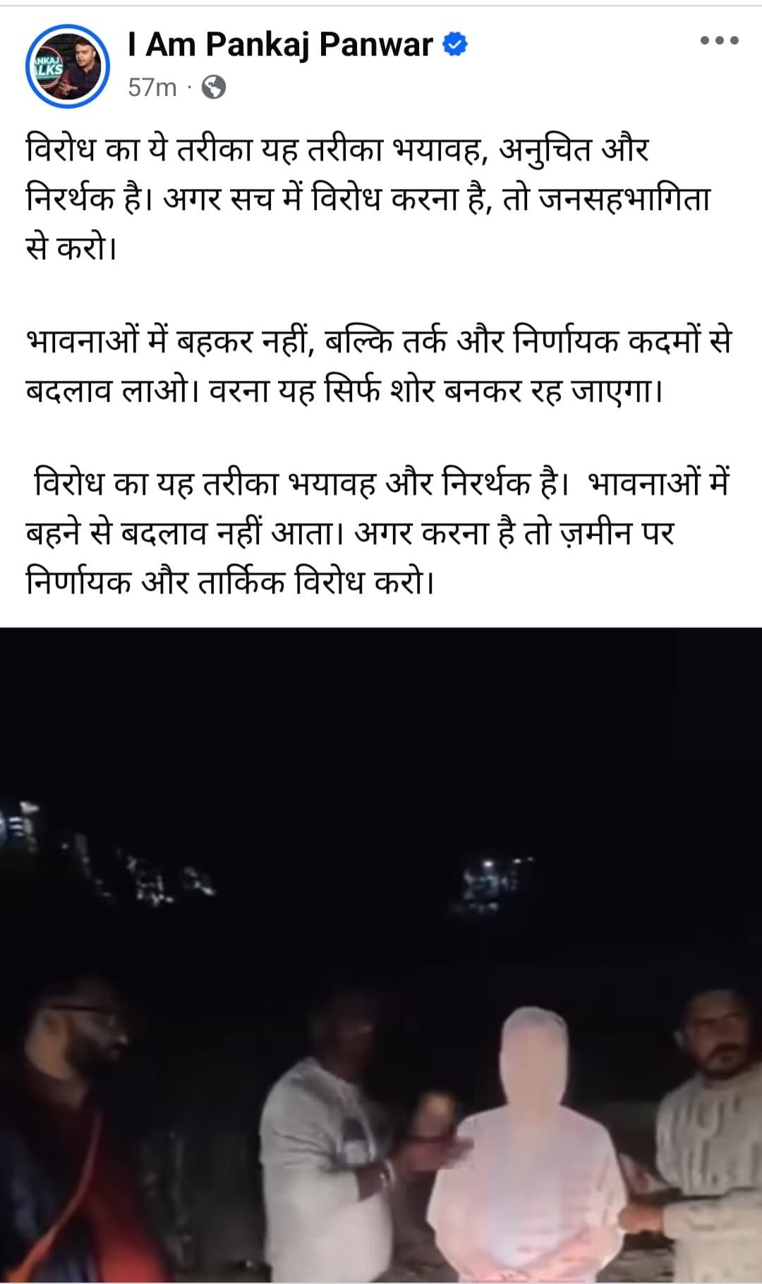 वरिष्ठ पत्रकार पंकज पंवार ने भी इस घटना की कड़ी आलोचना की। उन्होंने कहा कि भावनाओं में बहकर विरोध करना बेकार है। अगर विरोध करना है तो जनसहभागिता और तार्किक सोच के साथ किया जाए। उन्होंने कहा कि इस तरह के हिंसक प्रदर्शनों से कोई ठोस बदलाव नहीं आएगा और यह केवल एक शोर बनकर रह जाएगा। उन्होंने प्रदर्शनकारियों को सुझाव दिया कि वे जमीन पर निर्णायक और तार्किक विरोध के तरीके अपनाएं।